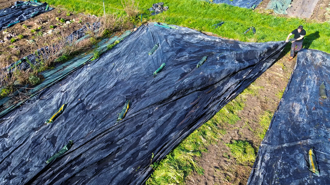 C’est la méthode que nous privilégions : un bâchage long, de novembre à mars. Il est idéal lorsque les futures cultures sont programmées dès janvier, février ou mars, car la période est trop courte pour obtenir un engrais vert utile.
